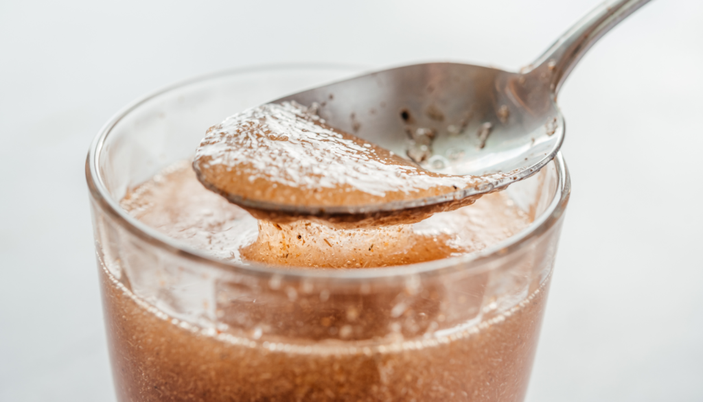 Ce qui rend le tégument du psyllium blond si spécial c’est sa richesse en fibres (80g aux 100g) et notamment en mucilages. Ces derniers ont la particularité de gonfler au contact des liquides, formant une texture gélatineuse comme c’est le cas avec les graines de chia ou le tapioca.